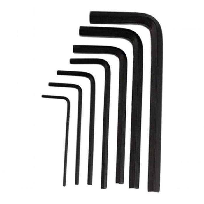 Jogo de chaves hexagonal 1, 5 a 6mm 7 peças. Fabricado em aço cromo-vanádio temperado. Acabamento oxidado que garante uma proteção extra contra corrosão.