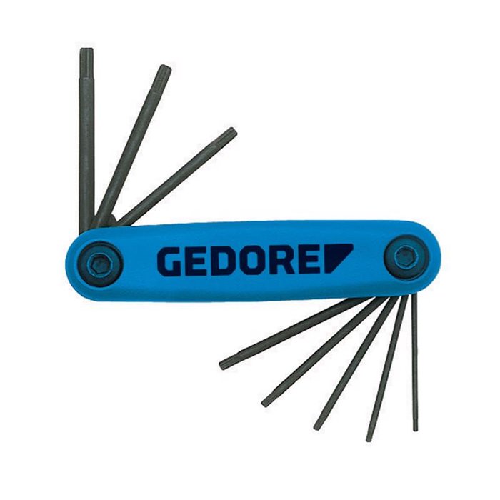 Jogo de Chaves Allen Tipo Canivete Perfil Tork com 8 Peças T6 a T25 - Gedore 024660 azul