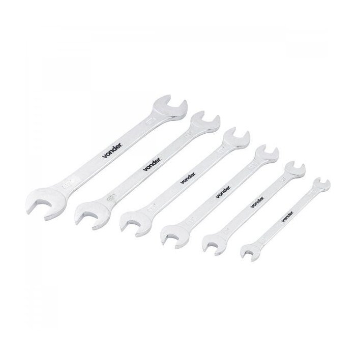| Itens Inclusos | 1 Jogo de chaves fixas, composto por um suporte plástico com 6 peças, sendo: 6 mm x 7 mm, 8 mm x 9 mm, 10 mm x 11 mm, 12 mm x 13 mm, 14 mm x 15 mm e 16 mm x 17 mm |