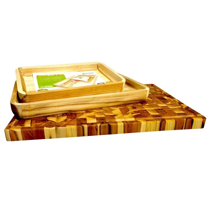 Jogo de Churrasco contendo uma Tábua de Churrasco de Madeira Teca + Duas gamelas ideais para os preparativos da carne - PRODUTO NOVO