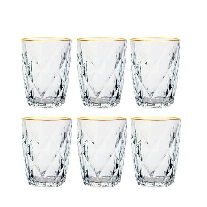 06 unidades Copo de Vidro Diamond Transparente Fio de Ouro 270ml – Lyor