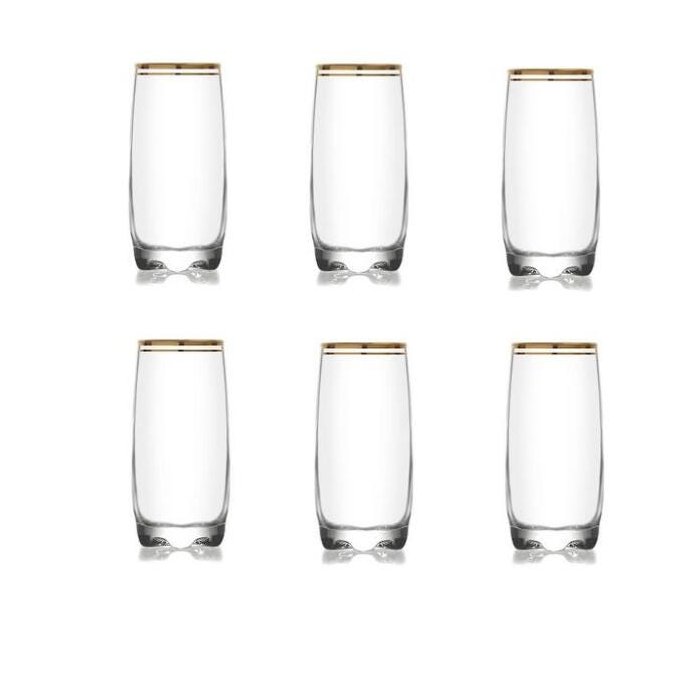 Jogo de Copos 6 Peças Borda Dourada Long Drink 390 Ml - Mimo