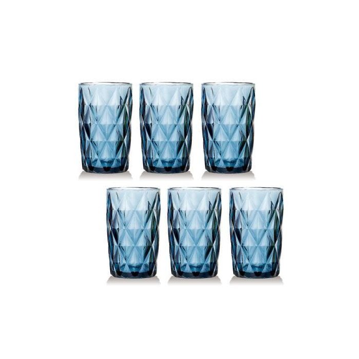 Jogo de Copos Diamante Azul 350ml Vidro Class Home azul