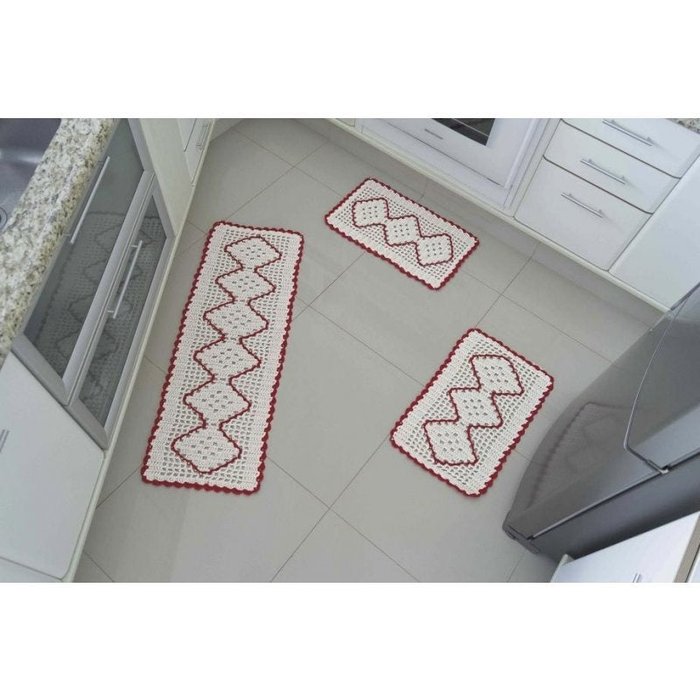 Jogo de Cozinha 03 Peças Crochê - Vermelho