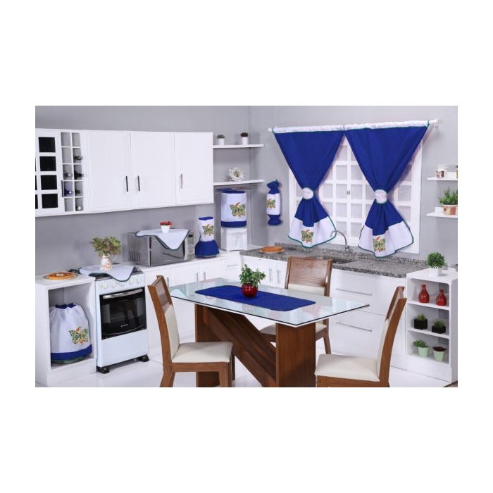 Jogo de Cozinha 10 Peças com Estampado Tecido Tergal: Borboleta Azul