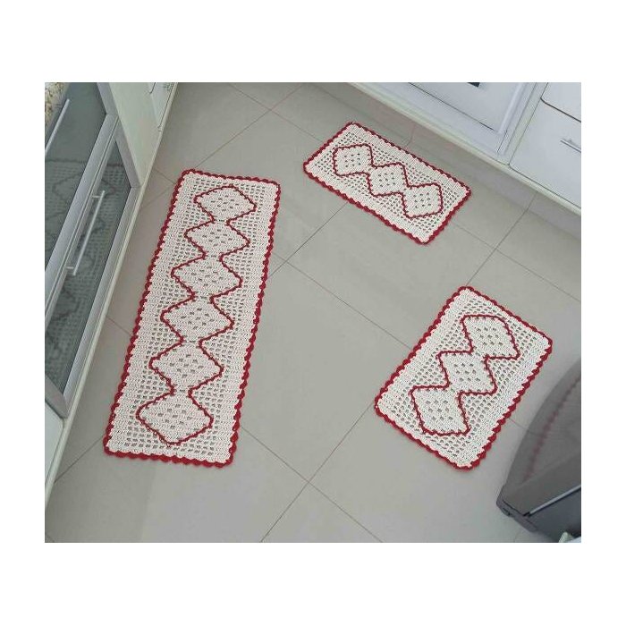 Jogo de Cozinha Crochê Vermelho com 3 Peças