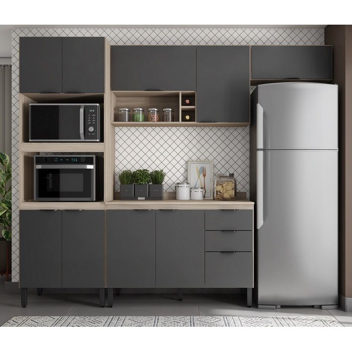Jogo de Cozinha Modulada Firenze 260m C/ Nicho P/ Forno e Microondas - Avena Touch/ Grafito Demóbile