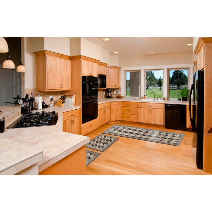 O JOGO DE COZINHA SISAL LOOK é imbatível em qualidade e possui excelente custo beneficio. É lavável e não mancha, uma vez que na produção do fio que compõe a superfície deste tapete existe um processo especial que resulta em uma característica hidrófila que inibe a formação de fungos e bactérias e consequente destruição de seu produto. Seu acabamento é diferenciado com overloque nas laterais e com a novidade da barra dobrada nas pontas, o que resulta em melhor fixação no piso. Possui base antiderrapante, primordial para a segurança visto o grande fluxo no ambiente onde é utilizado.