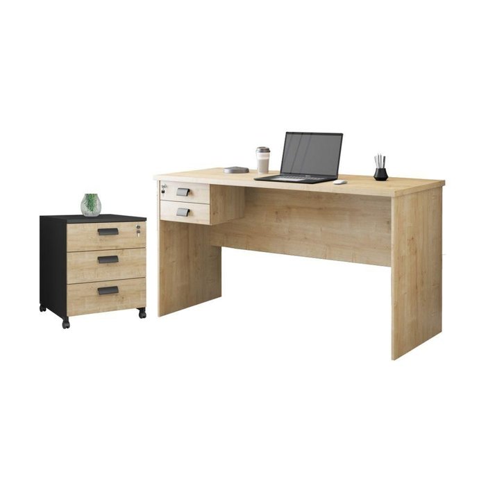 Jogo de Escrivaninha 120 e Gaveteiro Ippo Natura Preto
