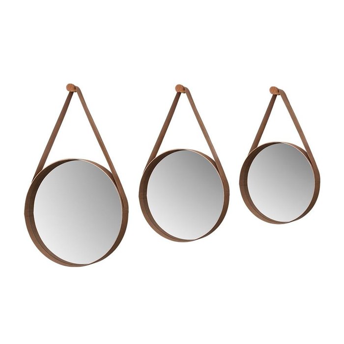 O conjunto de espelhos com o design redondo possui fino acabamento, item único que agrega beleza, funcionalidade e requinte para seu espaço. Pino para colocação incluso.(acompanha alça de courino) Material em corino dando mais resistência e durabilidade para o produto. Dimensões do Espelho 1: Altura: 35 cm Largura: 35 cm Profundidade: 30 cm Dimensões do Espelho 2: Altura: 50 cm Largura: 50 cm Profundidade: 30 cm Dimensões do Espelho 1: Altura: 60 cm Largura: 60 cm Profundidade: 30 cm Informações dos Espelhos: Cor: Castanho Borda em courino. Possui alça de courino Pino para colocação incluso. Itens Inclusos: 3 Espelhos redondos 3 Alças Manual de Montagem Kit completo para montagem e manual de instruções Garantia: 3 meses contra defeito de fabricação Informações Adicionais: - Fotos meramente ilustrativas do produto no ambiente. - Os objetos que ambientam as fotos não acompanham o produto; - Verificar descrição e tamanho do produto antes da compra. - Avaliar a mercadoria no ato do recebimento e recuse em caso de divergência ou avarias. - Mantenha as informações de contato e endereço de entrega atualizados para entrarmos em contato caso necessário. - Limpar com flanela ou pano macio seco, não utilizar produtos abrasivos, desengordurantes, álcool ou solvente. Não expor o produto diretamente à luz solar e à umidade. * Sugerimos a contratação de um montador profissional para a montagem do produto. Não nos responsabilizamos por avarias causadas no ato da montagem. * Não nos responsabilizamos pela montagem e desmontagem do produto no ato da entrega e devolução, assim como os custos gerados nestas situações. * A transportadora entregará o produto no andar térreo do endereço de entrega. * Não nos responsabilizamos por subir escadas, corredores e elevadores ou transporte por guincho em apartamentos.