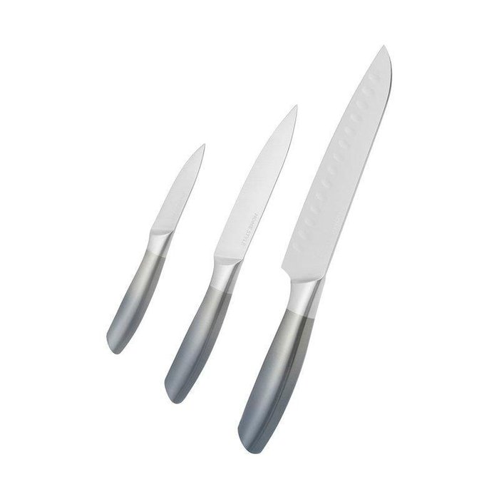 O Jogo de Facas Vip possui 3 peças fabricadas em aço inox e cabos em polipropileno ideal para manipular alimentos em panelas antiaderentes, pois não causa riscos. Vem com um suporte que acomoda os utensílios.