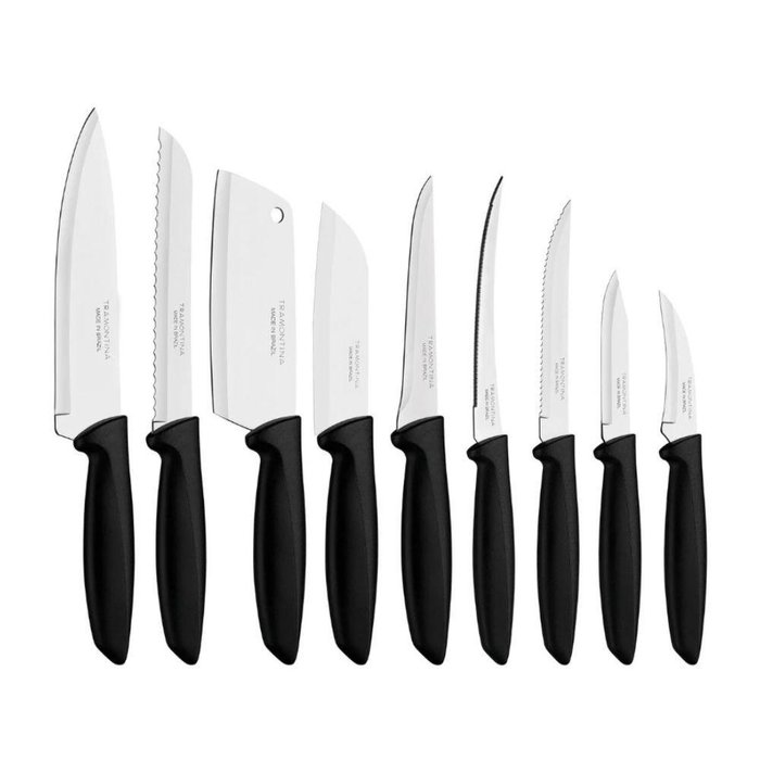 Jogo De Facas Plenus Em Aço Inox e Cabos De Polipropileno Preto 9 Peças- Tramontina -