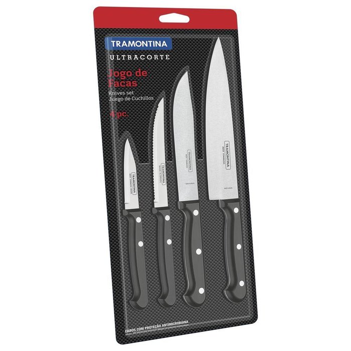 Jogo De Facas Tramontina Ultracorte Com Laminas Em Aço Inox E Cabos De Polipropileno Preto 4 Peças