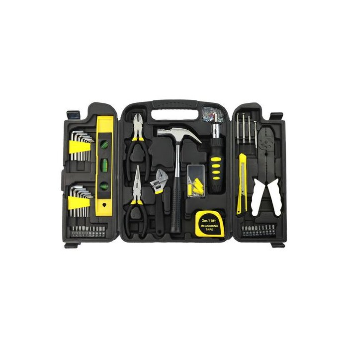 Caixa de Ferramentas para uso geral com 159 peças, resistentes e duráveis.<br> <br> 16 pcs chave sextavada<br> 20 pcs bits<br> 01 pc régua de nível<br> 01 pc alicate de ponta longa<br> 01 pc alicate de corte diagonal<br> 01 pc martelo de garra de 8 onças<br> 01 pc: chave de boca ajustável<br> 01 pc chave de fenda<br> 01 pc fita métrica<br> 04 pcs chaves de fenda de precisão<br> 01 pc faca<br> 01 pc alicate de crimpagem<br> 80 pcs fechos de variedade em uma caixa de plastico<br> 30 pcs Conectores terminais em saco