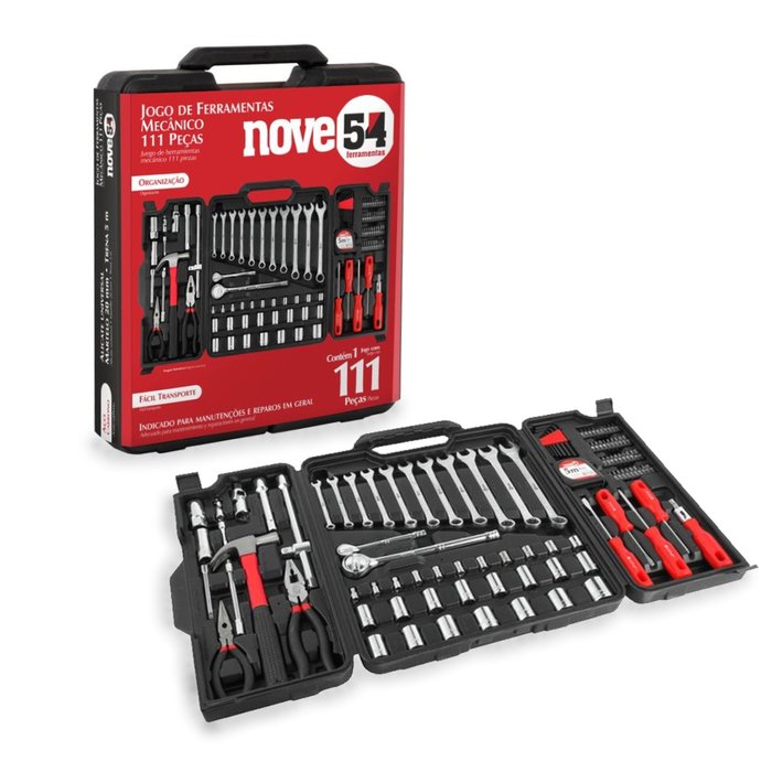Jogo De Ferramentas Para Mecanico 111 Peças Completo Com Maleta Dobrável Nove54