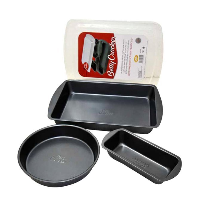 O conjunto de 3 Assadeiras Betty Crocker em aço carbono com revestimento antiaderente é essencial na sua cozinha. Tem um fundo que permite uma distribuição de calor uniforme, para um preparo mais eficaz e rápido. Fabricada com material durável e resistente, oferece qualidade e segurança alimentar, pois não solta resíduos no alimento além de não reter cheiros.