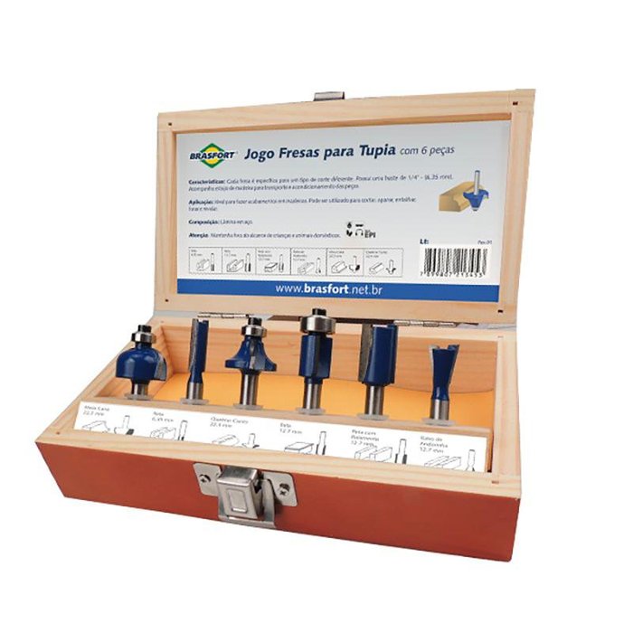Jogo de Fresas Tupia p/ Madeira com 6 Peças Haste 6,35 MM 7893 BRASFORT