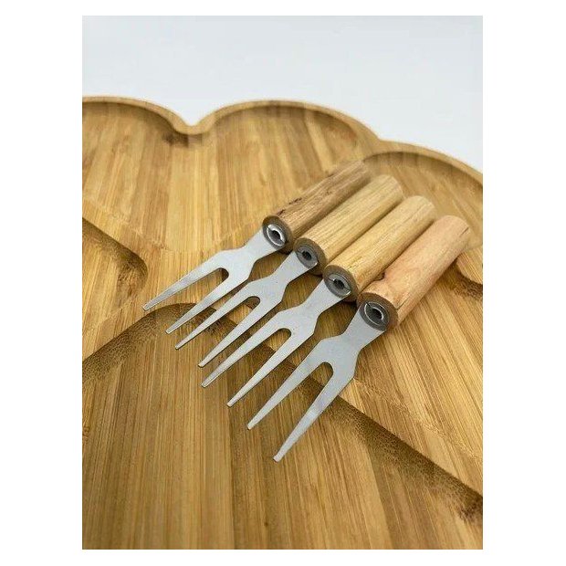 Jogo de Garfos para Petiscos em Aço Inox 8 Peças com Cabo de Madeira