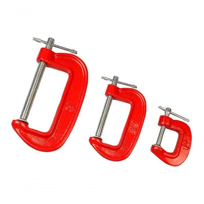 Jogo de Grampos Tipo C com 3 Peças Carpintaria Marcenaria Vermelho