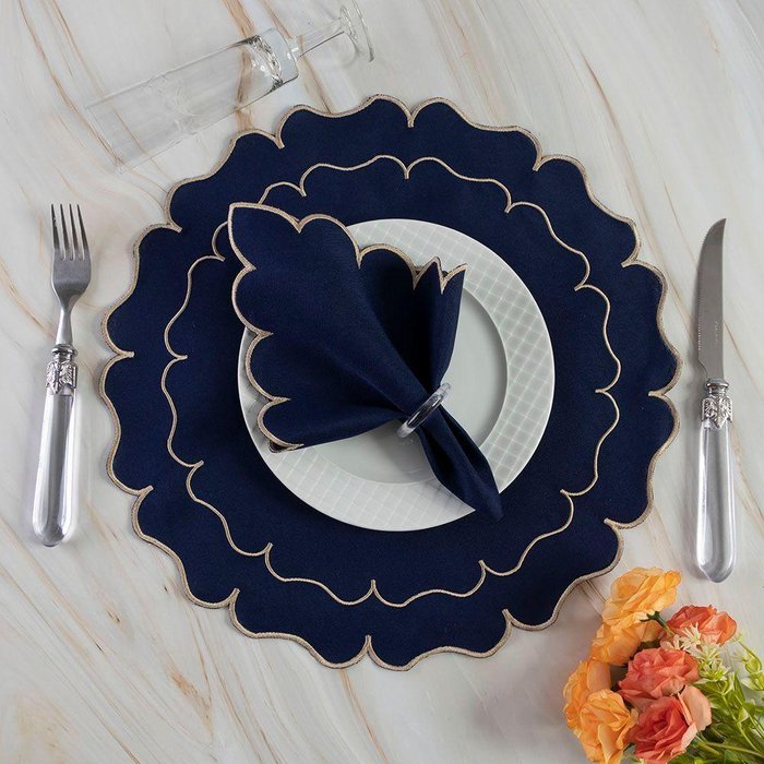 Jogo de Guardanapos Sousplat Americano 12 Peças Bordado Decorativo - Florata Premium Marinho