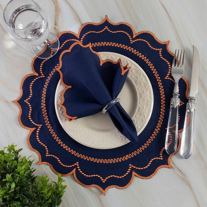 Jogo de Guardanapos Sousplat Americano 12 Peças Bordado Decorativo - Itália Marinho