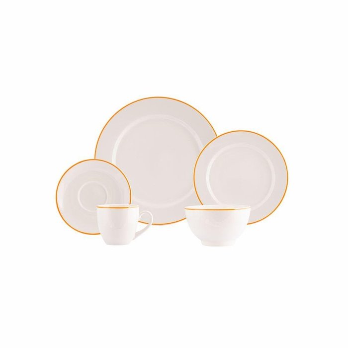 Jogo de Jantar 30 Peças Filete Porcelana Real By Schmidt Cor:laranja Branco