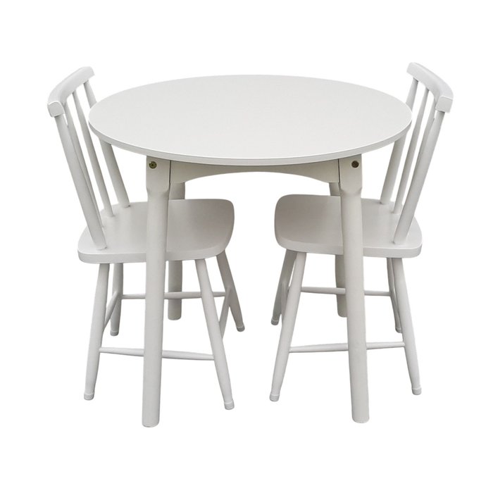 Jogo de Jantar Colonial Brisa Mesa 80cm Branca + 02 Cadeiras Brancas - Rustico Linda ( Redonda ) Branco