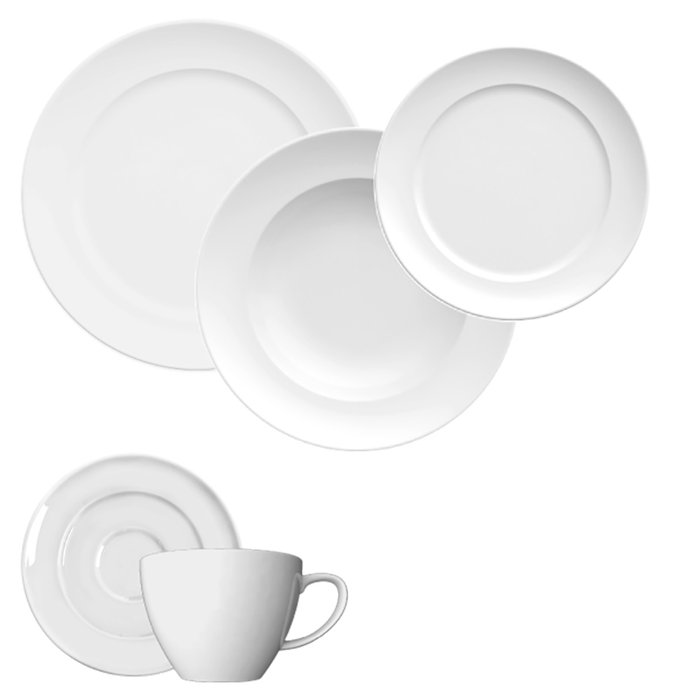 Jogo de Jantar e Chá Porcelana 30 Peças com Pratos Rasos e Fundos Branco Versa Germer