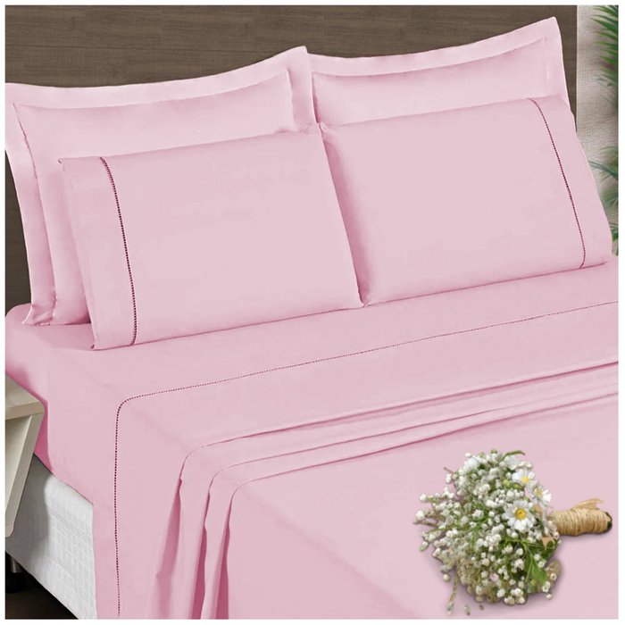 Jogo de Lençol 4 pçs Casal 400 fios Ponto Palito King Cor:Rosê
