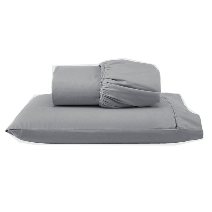 Jogo de Lençol 400 Fios Solteiro 2 Peças em Ponto Palito Cor:cinza