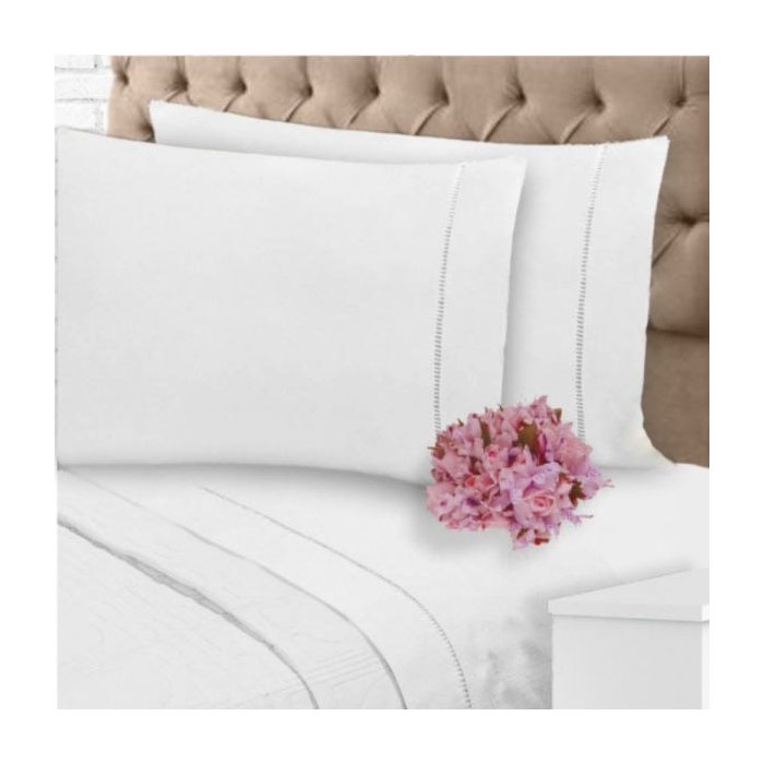 Jogo de Lençol 400 Fios Toque Suave e Macio Ponto Palito Cama Queen 3 Peças Branco Casa Dona
