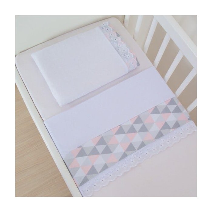 Jogo de Lençol Americano 3 peças Bandeirola Rosa Bebê