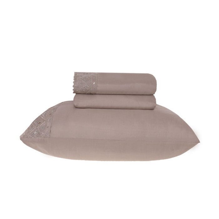 JOGO DE LENÇOL BENE CASA SOLTEIRO 160 X 220 BORDADO INGLÊS - UN - Areia Areia