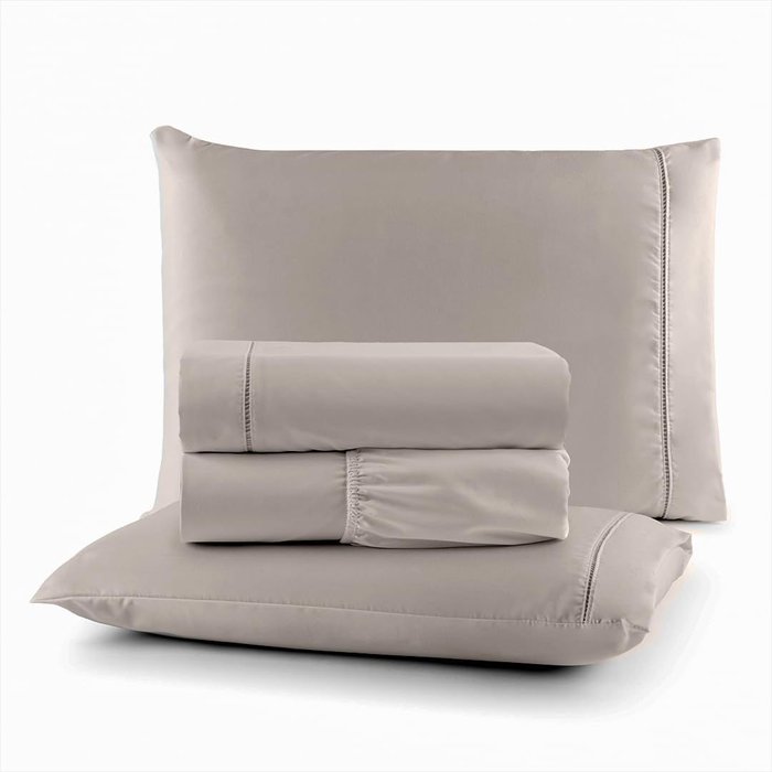 Jogo de Lençol Cama Casal 200 Fios Algodão 4 Peças Ponto Palito Anti-pilling com Toque Suave Premium Bege
