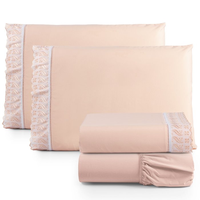 Jogo de Lençol Cama Casal 4 Peças 100% Algodão Percal 180 fios Com Leze:Salmão