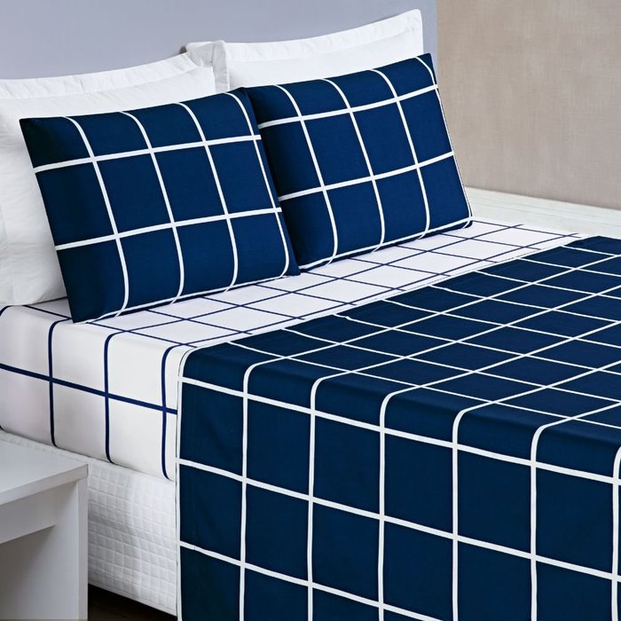 Jogo de Lençol Cama King 4 Peças 200 Fios Micropercal Austin:Azul Marinho Azul Marinho