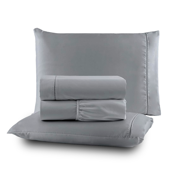 Jogo de Lençol Cama Queen 200 Fios Algodão 4 Peças Ponto Palito Anti-pilling com Toque Suave Premium Cinza