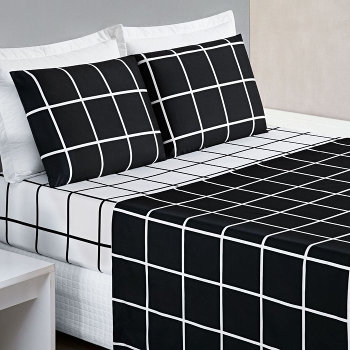 Jogo de Lençol Cama Solteiro 3 Peças 200 Fios Micropercal Austin:Preto Preto