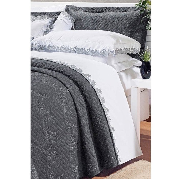 Jogo de Lençol Casal 04 Peças Percal 200 Fios Milano Prata - Bernadete Casa