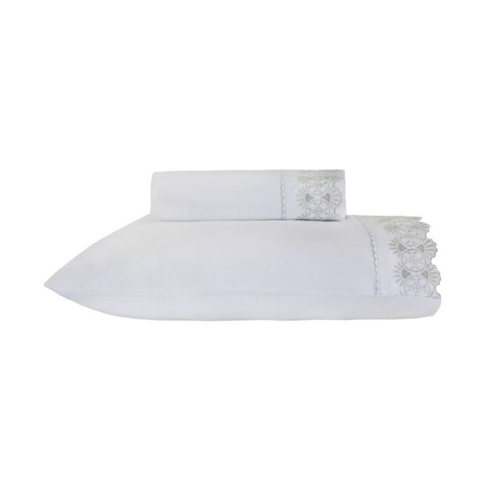 Jogo de Lençol Casal 200 Fios Vicenza Marken Fassi - Branco/Bege Oliva