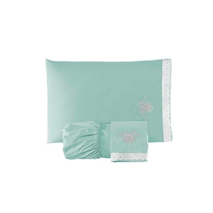 Jogo de lençol casal, algodão, 3 peças, bordado com elástico