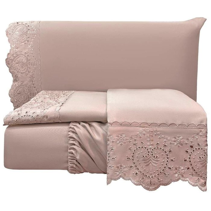Jogo de Lençol Casal Padrão Bordado Ingles 300 Fios Nupcias 4 Peças Cor Malva