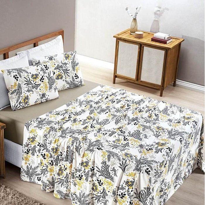 Jogo de Lençol Casal Padrão Quality Malha 100% Algodão Estampado 4 Peças - Blossom Bia Enxovais