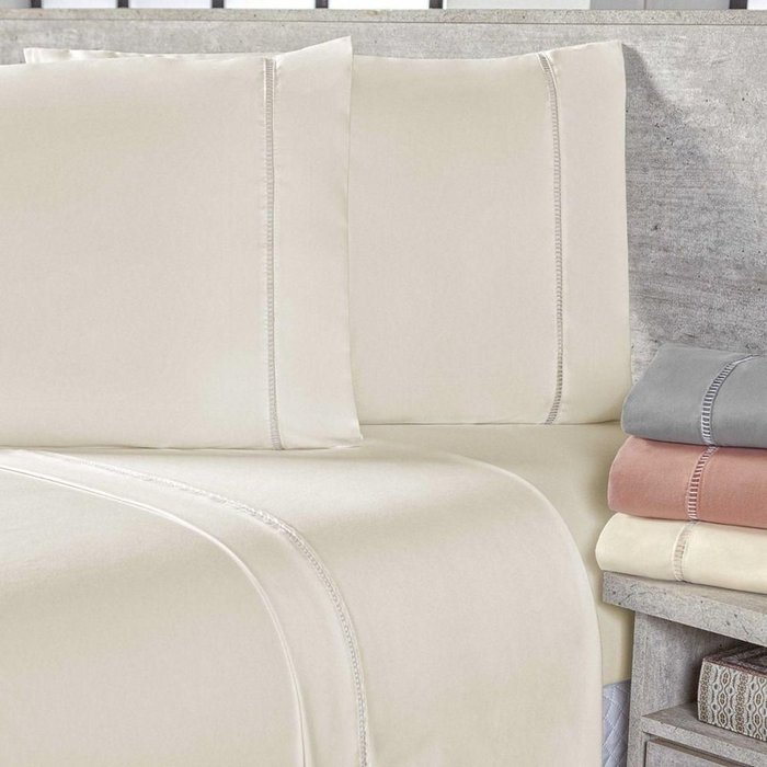 Conteúdo Embalagem:01 - Lençol de Cima 2,20m x 2,50m 01 - Lençol de Baixo com Elástico 1,38m x 1,88m x 25cm altura 02 - Fronhas com Detalhes em Ponto Palito 70cm x 50cm Composição: Tecido: Micropercal 400 Fios - 100% Poliéster Imagens Ilustrativas. Apenas itens descritos acima, compõem o produto. Atenção: Certifique-se que as medidas do produto atende as dimensões da cama a qual será utilizado. ;