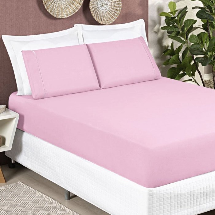 Jogo de Lençol Casal Queen 3 Peças Algodão 200 Fios Em Ponto Palito Marias Enxoval Jogo de Lençol Ca Rosa