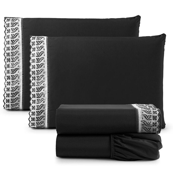 Jogo de Lençol Casal Suave Barrado Lese 4 Peças Barato - Preto Preto