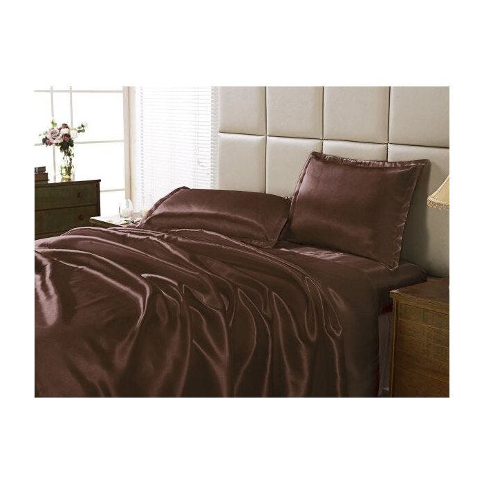 JOGO DE LENÇOL CETIM CASAL 4 PEÇAS - MARROM