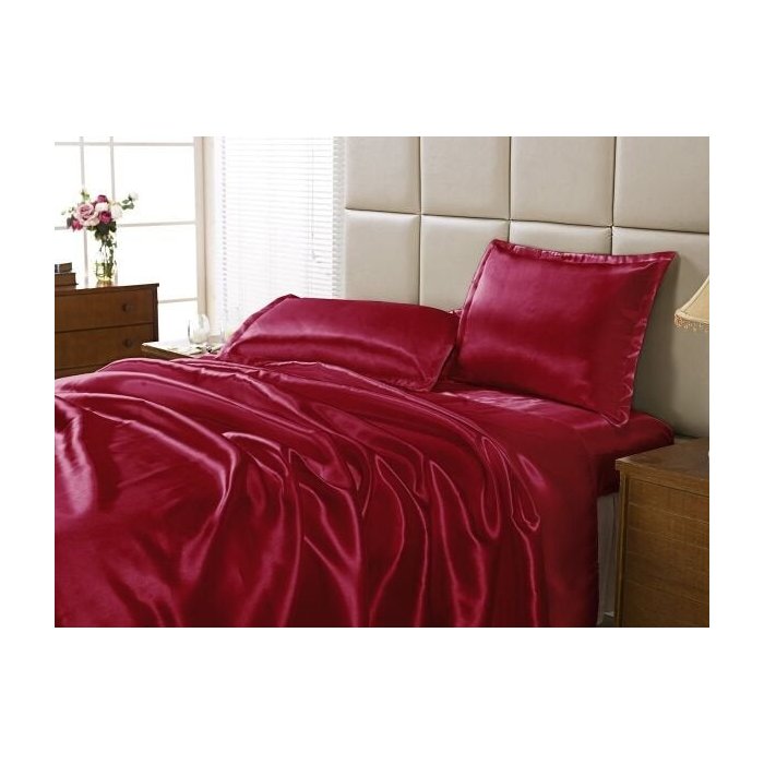 JOGO DE LENÇOL CETIM CASAL 4 PEÇAS - VINHO