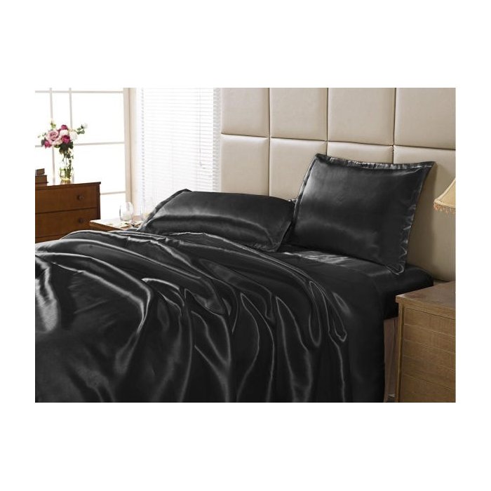 JOGO DE LENÇOL CETIM CASAL PADRÃO 3 PEÇAS PRETO