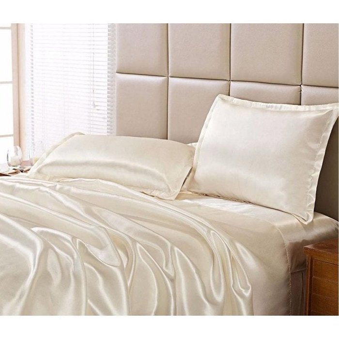 Jogo De Lençol Cetim Pérola Solteiro Seda Alto Brilho C/ Vira 3 Pçs